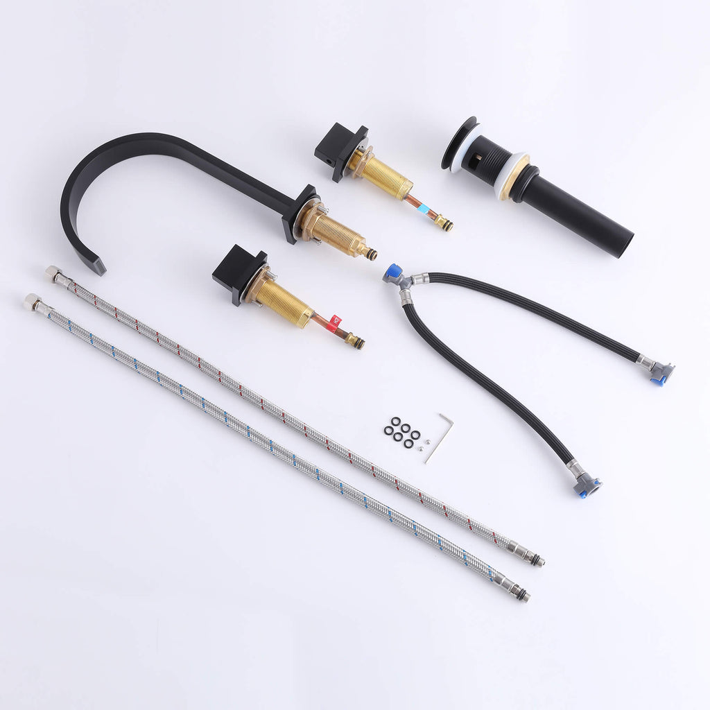 - 【Widespread Bathroom Faucet with Drain Assembly】Designed as a complete sink faucet set, including a matching pop-up drain for efficient drainage and streamlined installation.