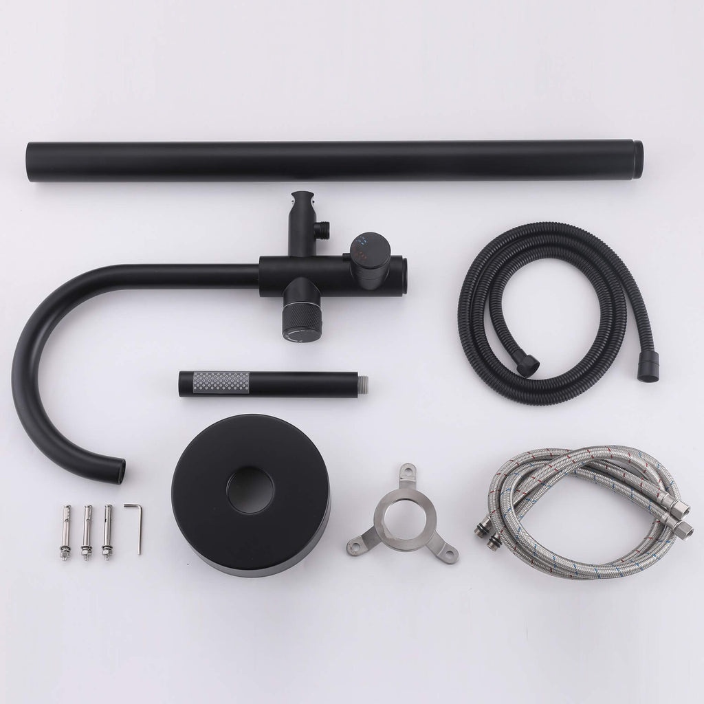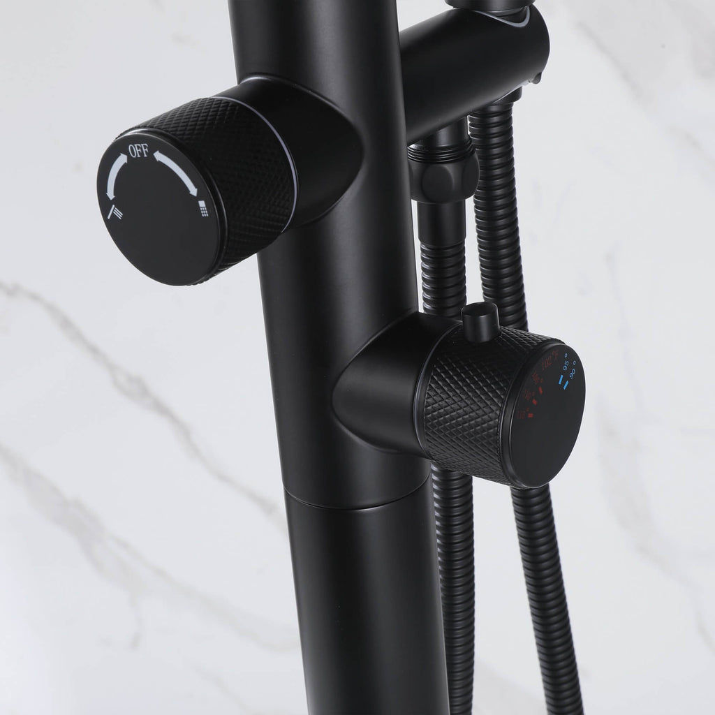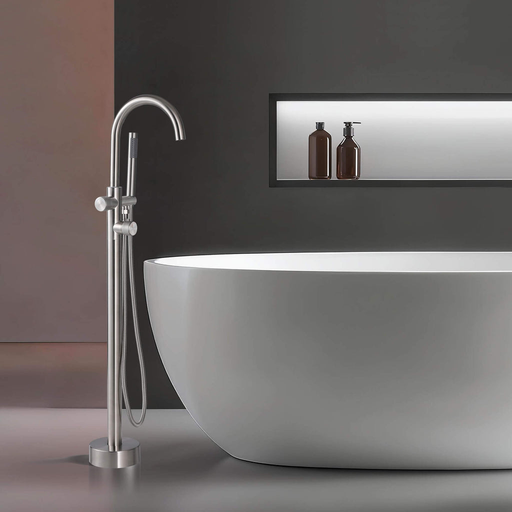 - 【Freestanding Floor-Mount Design】A clean, vertical freestanding structure with a solid base creates a refined architectural presence for outdoor bathtubs and spa-style installations.