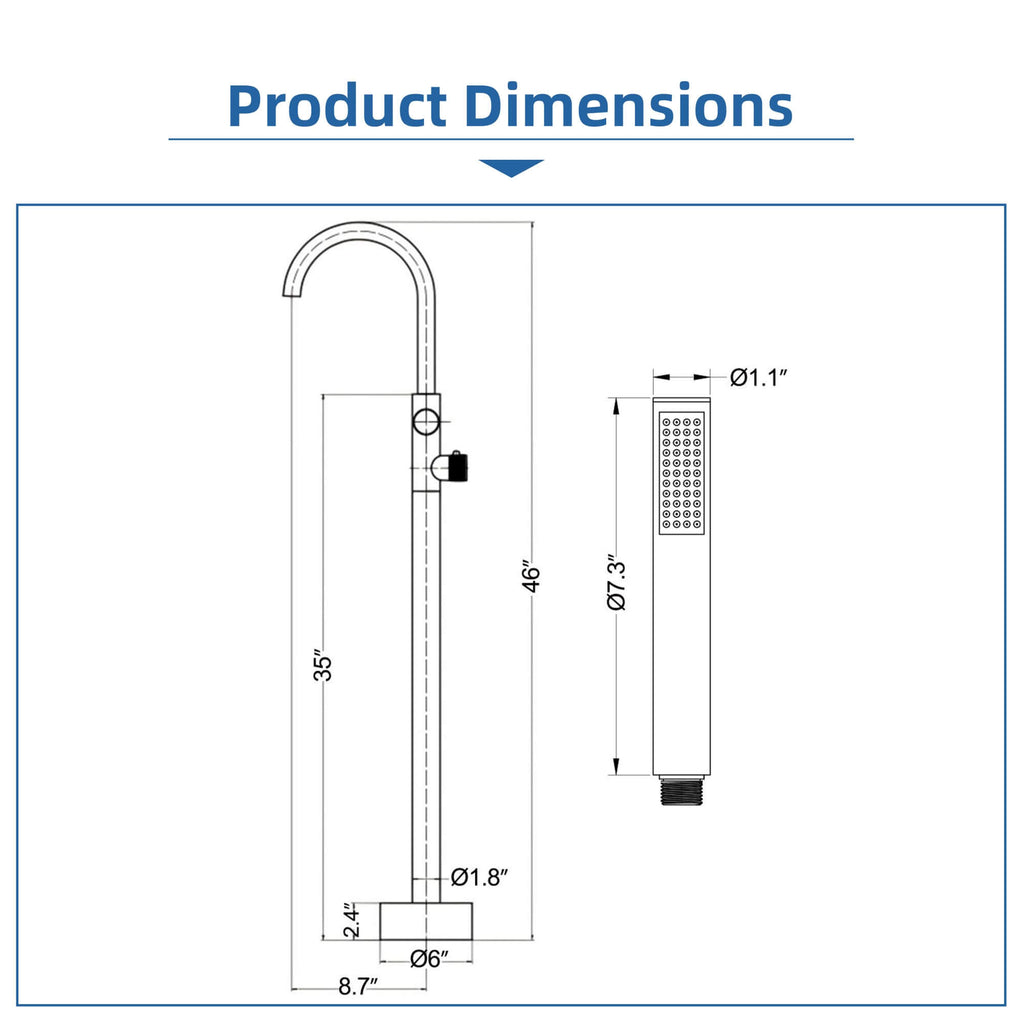 - 【Aerated Tub Spout with Handheld Shower Set】The aerated spout delivers a smooth, splash-reduced flow for comfortable tub filling, complemented by a handheld shower for rinsing and cleaning.