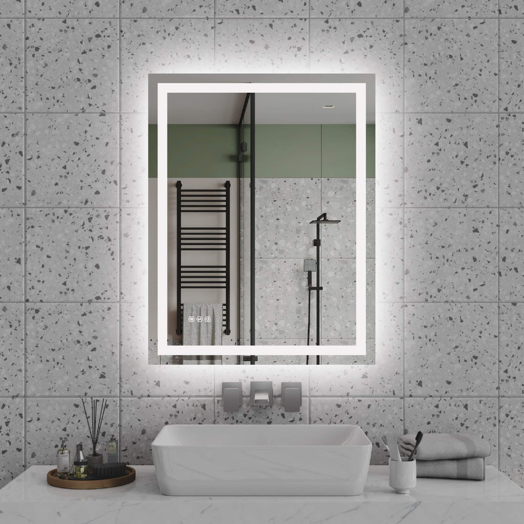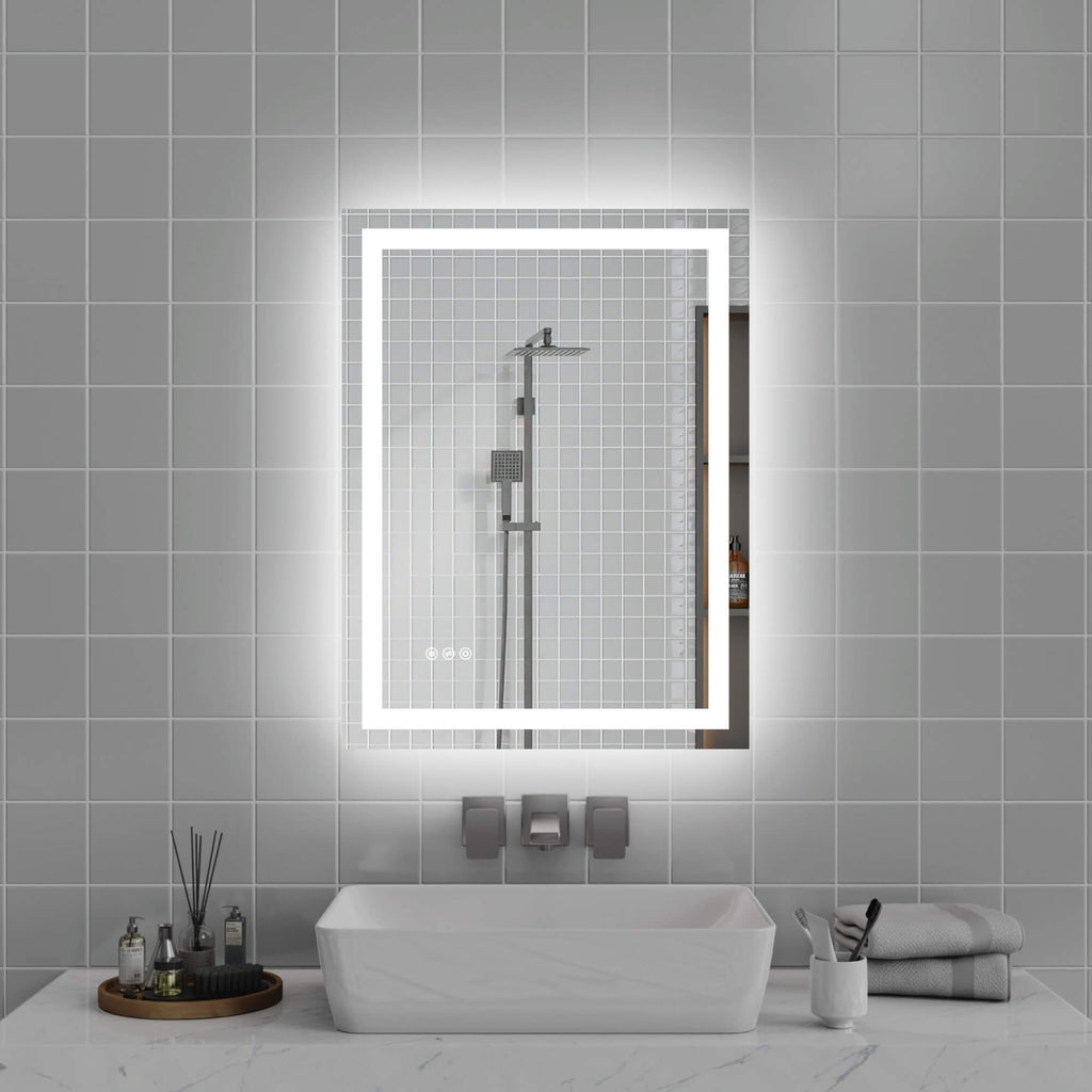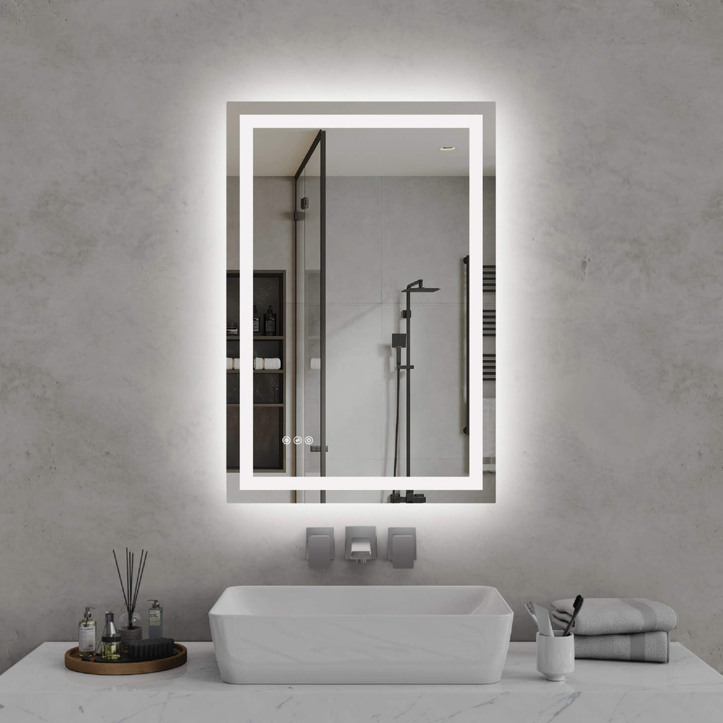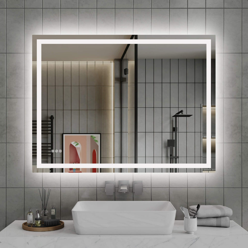 - 【Adjustable LED Lighting】This modern LED bathroom mirror features both front and back lighting with three color temperatures — warm (3000K), natural (4000K), and daylight (6000K). Perfect for makeup application, shaving, and daily routines.