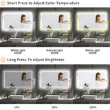 - 【Defogging Design】LED mirror's light and anti-fog are controlled separately. Defogging is turned on by default when the power is turned on, if not needed, just click the defogging button to turn it off. To avoid overheating the mirror due to the long time use of defogging, defogging will automatically turn off after one hour of continuous use, then you need to click the defogging button to turn on the defogging function again.