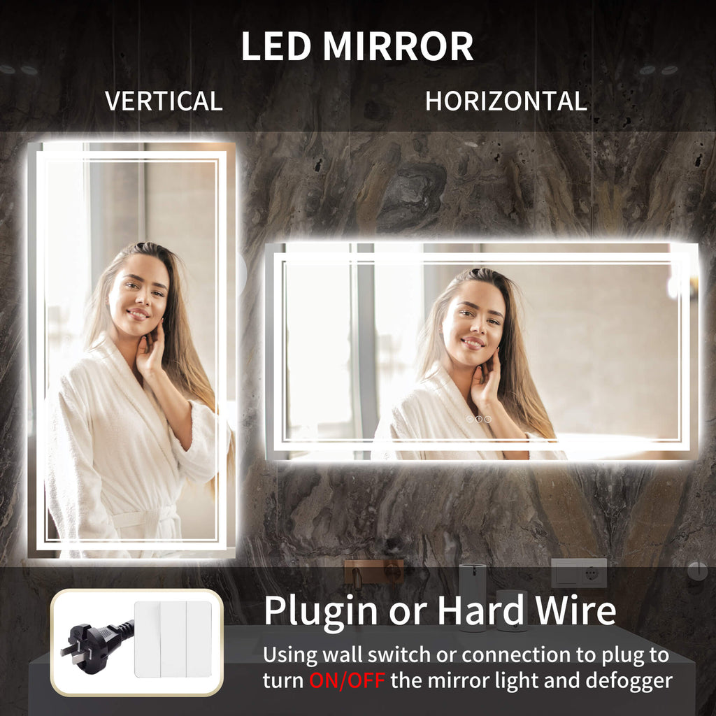 - 【Plug or Wall Switch】Our mirrors support normal wall switch control and can be connected using plugs or hardwired. With a variety of styles and sizes to meet the needs of different rooms. Can be installed in the bathroom, checkroom and the room you want to install it. Only plays an auxiliary role in the brightness of the room, and is not recommended as separate lighting.