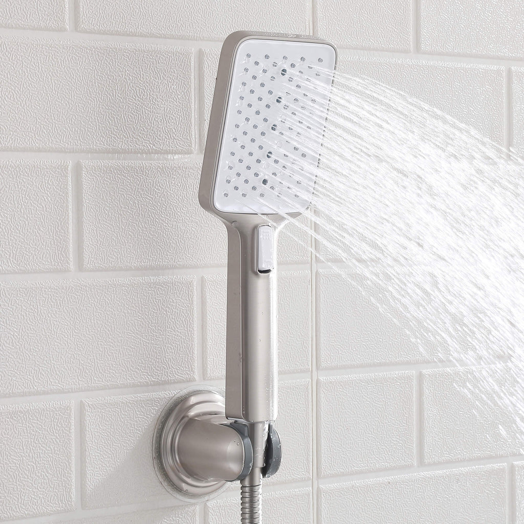 - 【Hands-Free Convenience】Featuring a handle-free design—when the handheld shower is turned off, the overhead showerhead automatically activates. (Note: The showerhead and handheld cannot run simultaneously.)