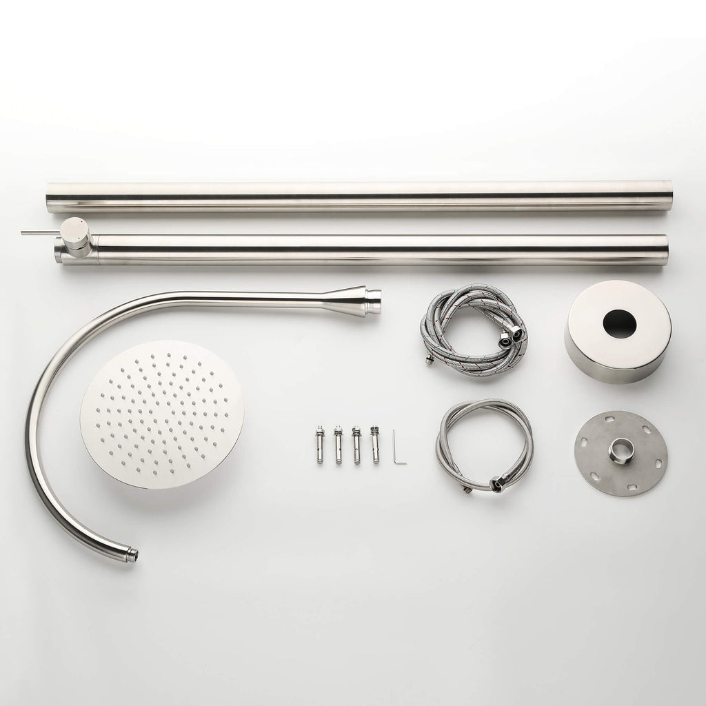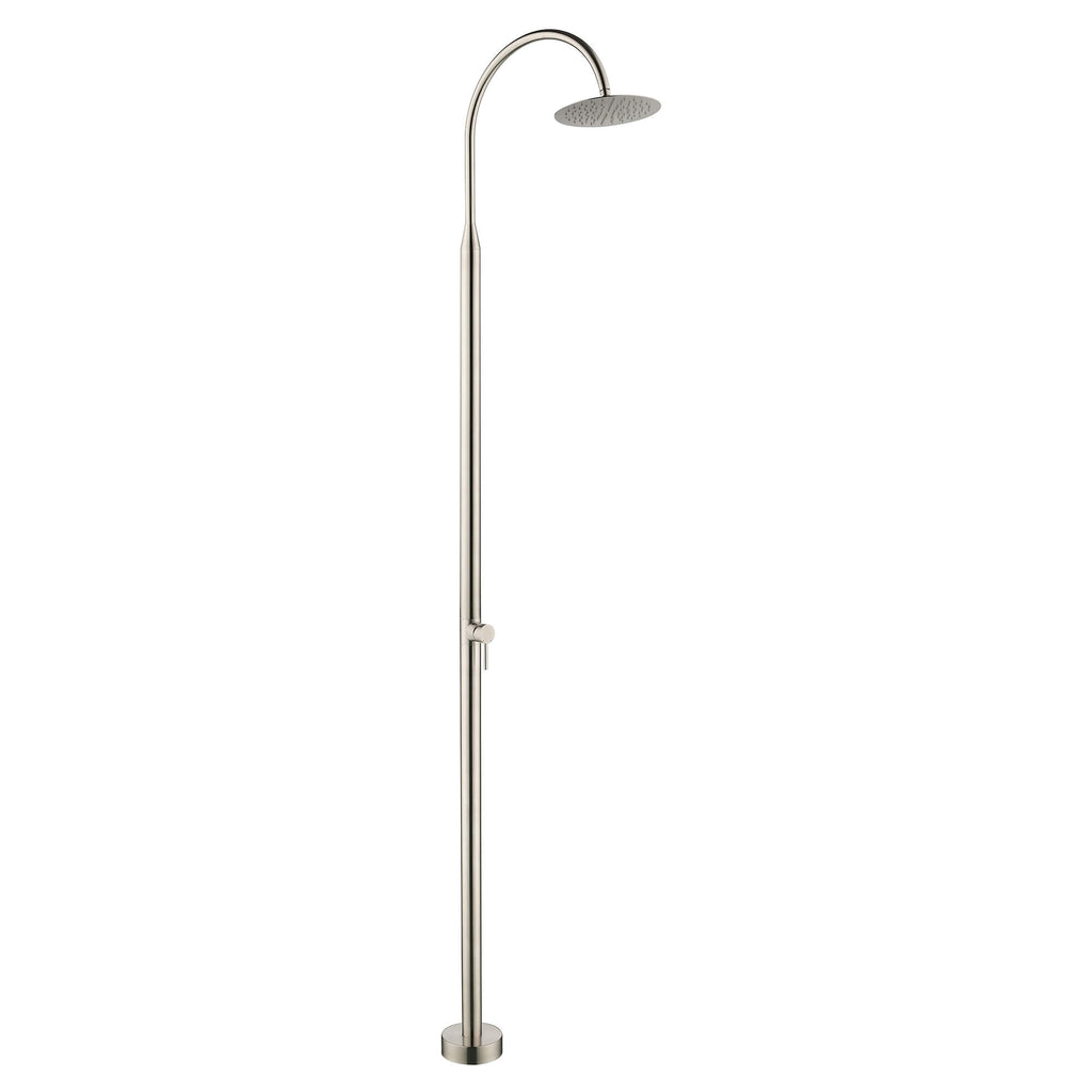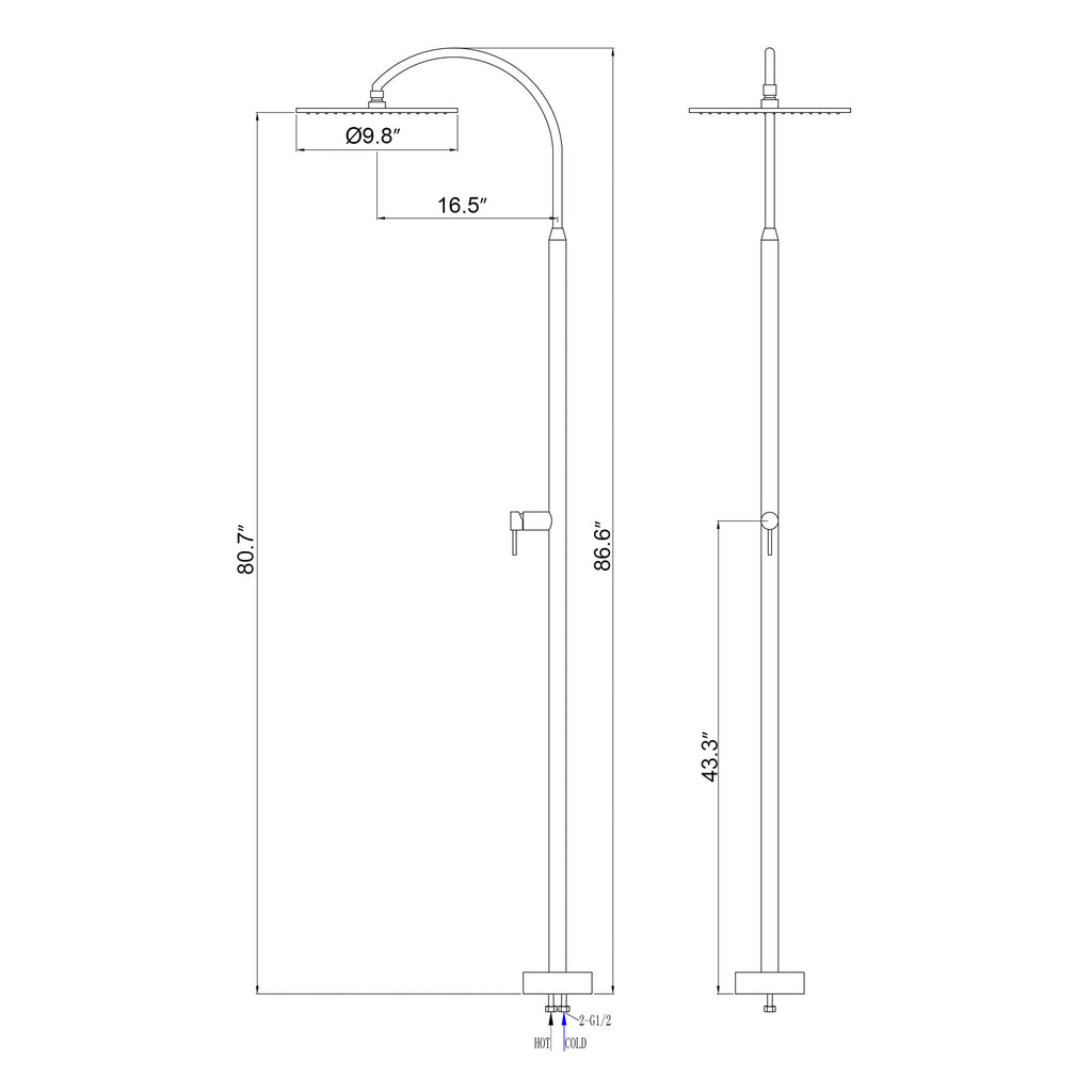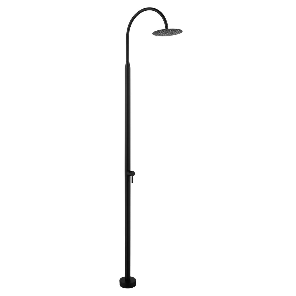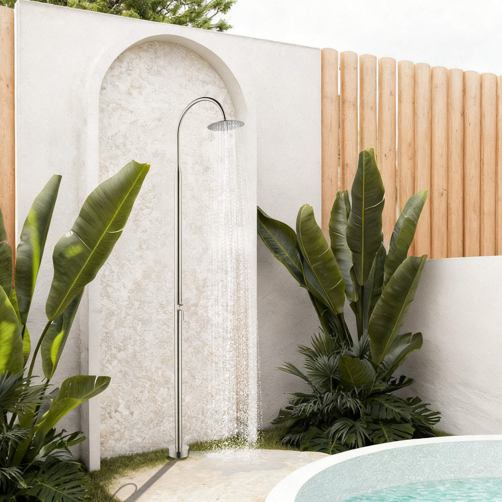 - 【Sleek Single-Function Rain Shower】Minimalist round shower head delivers a comfortable, even rainfall spray; the clean, slim column design keeps your outdoor space looking modern and uncluttered.