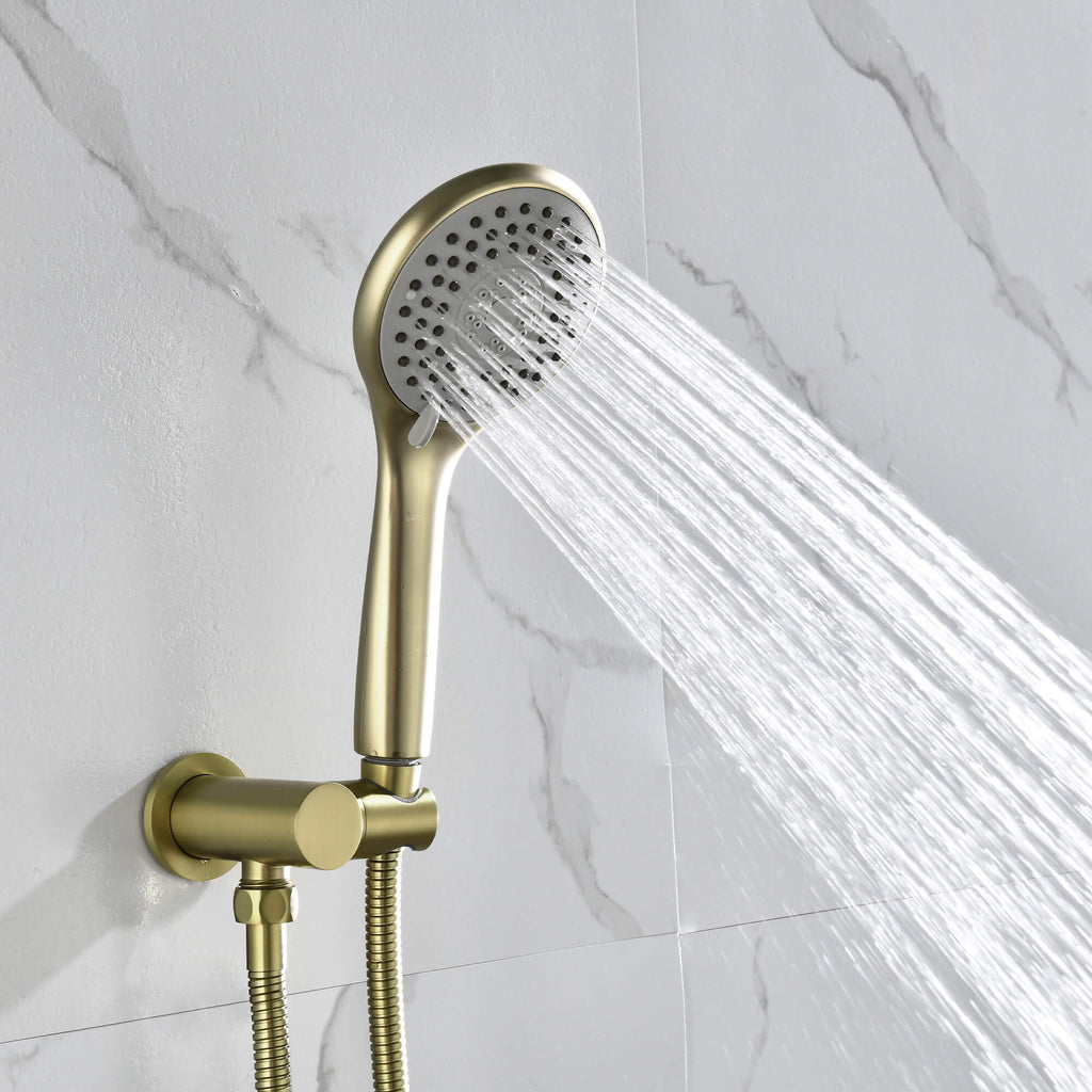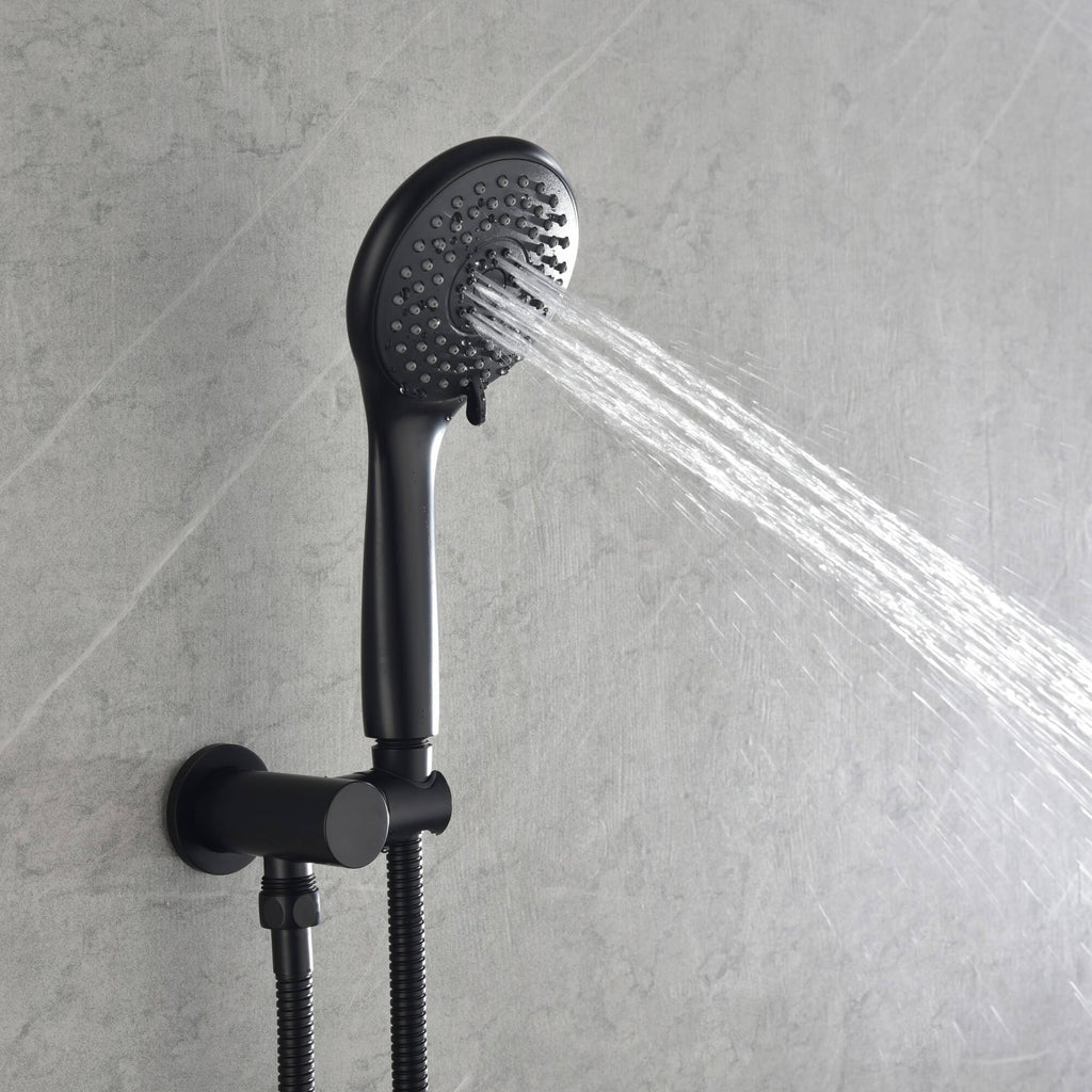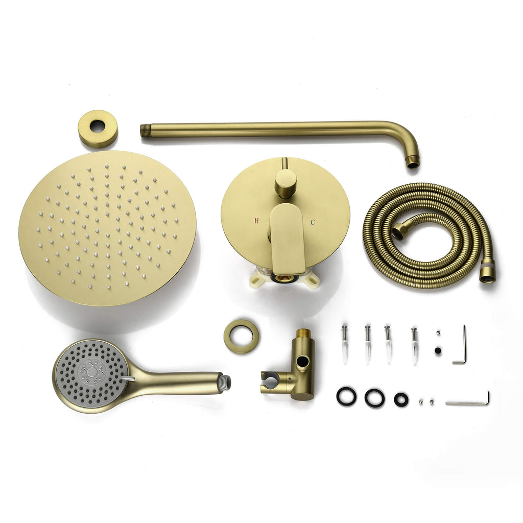 - This shower set package includes: valve trim(include rough in valve),rain shower head,handheld shower head, shower arm, elbow,shower holder.