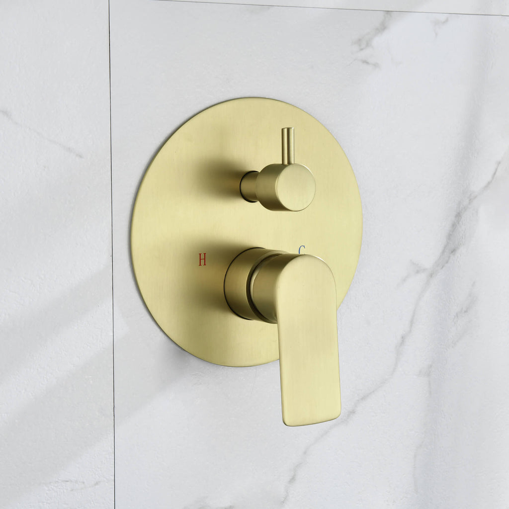 - The shower system is constructed of durable solid brass construction and is plated in polished chrome for corrosion and rust resistance.