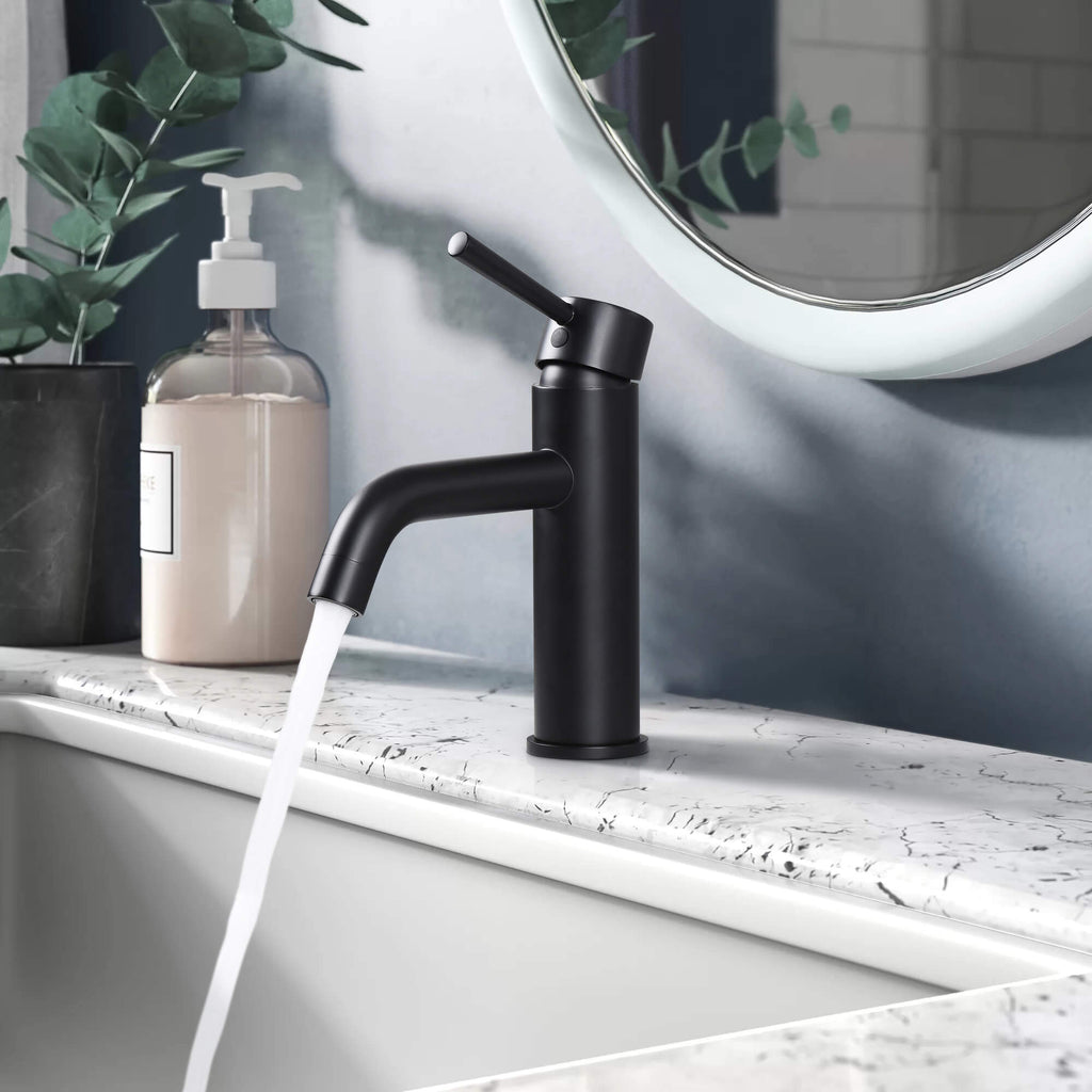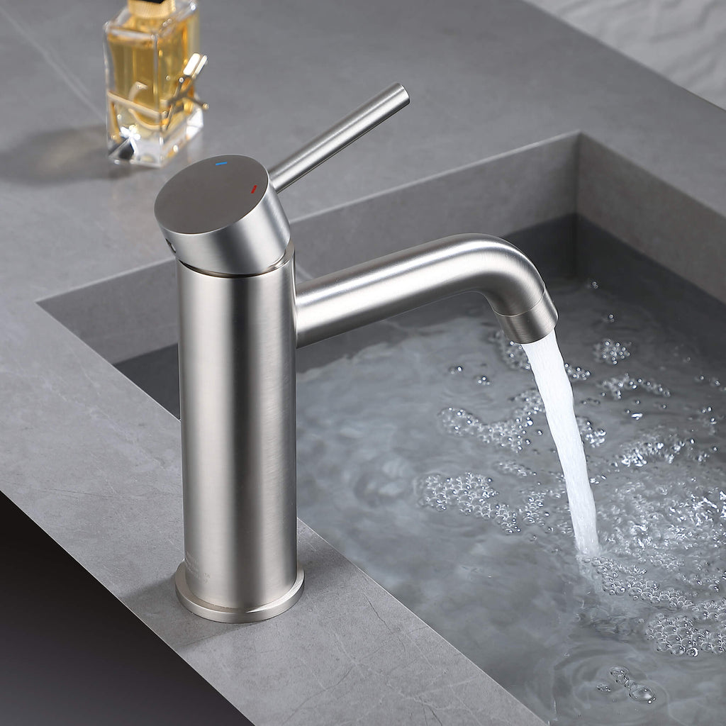 - 【Single Handle Bathroom Sink Faucet】The ergonomic handle offers easy, one-handed operation, allowing users to adjust water temperature and flow with accuracy and comfort.