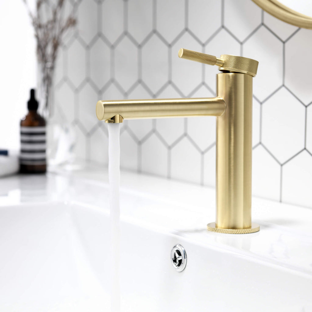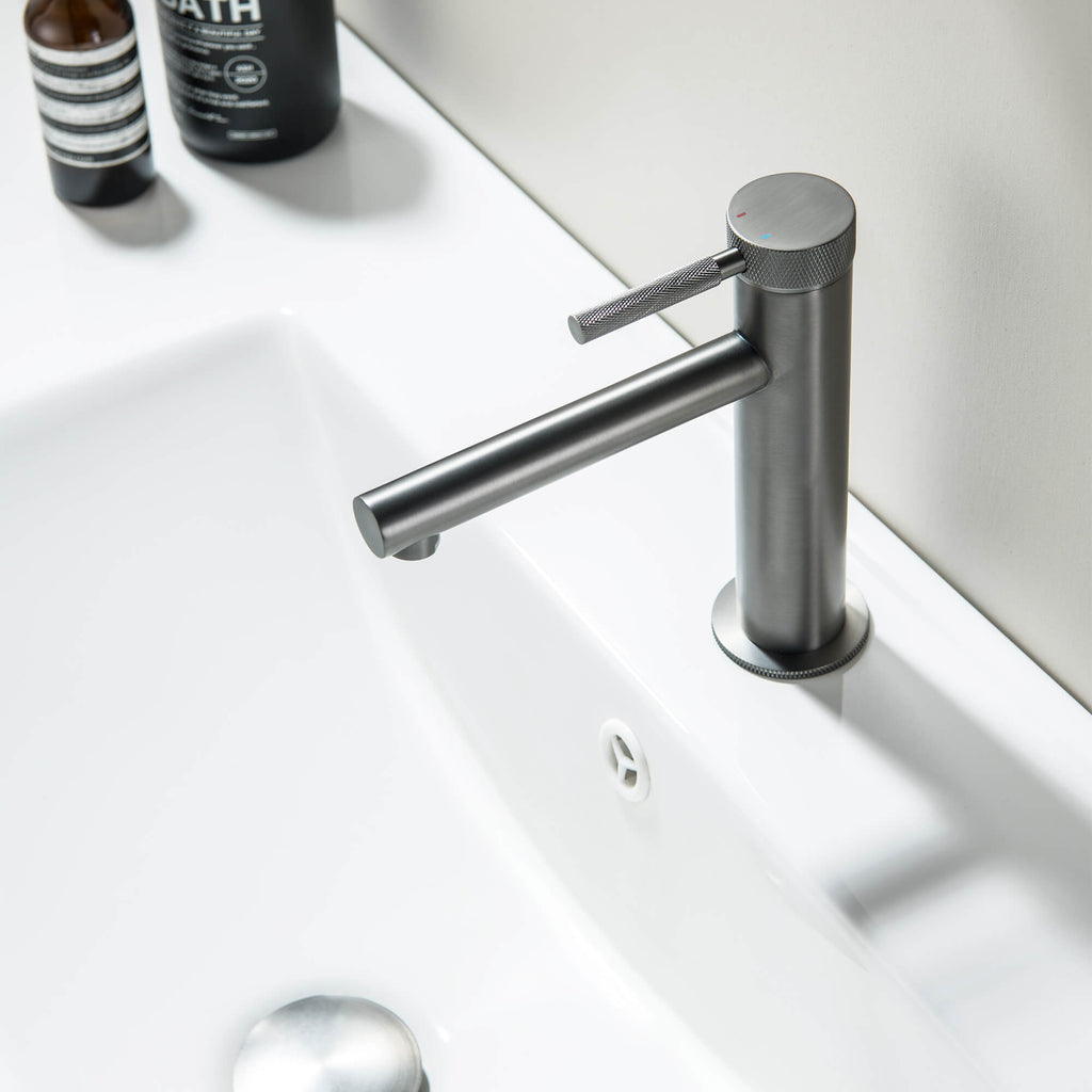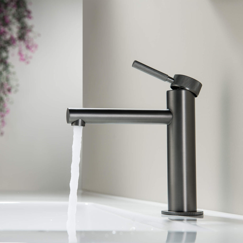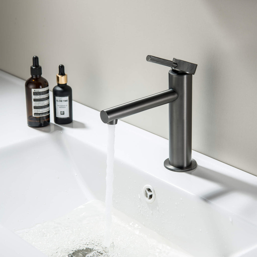 Modern Brass Bathroom Faucet Single-Hole Basin Mixer Tap with Knurled Handle