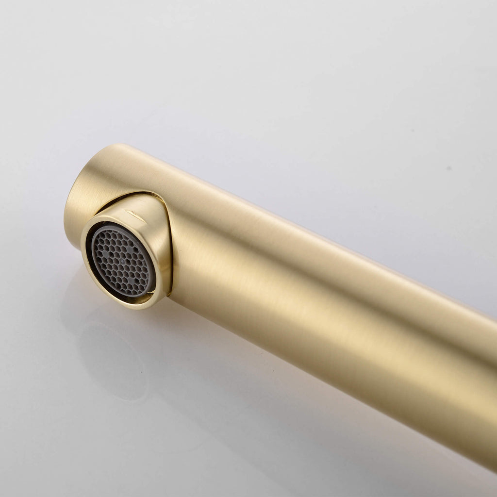 • 【Luxury Brushed Brass Finish】A warm, satin-gold tone that instantly elevates your bathroom décor. The brushed brass surface resists water spots and fingerprints, keeping your faucet looking clean and premium.