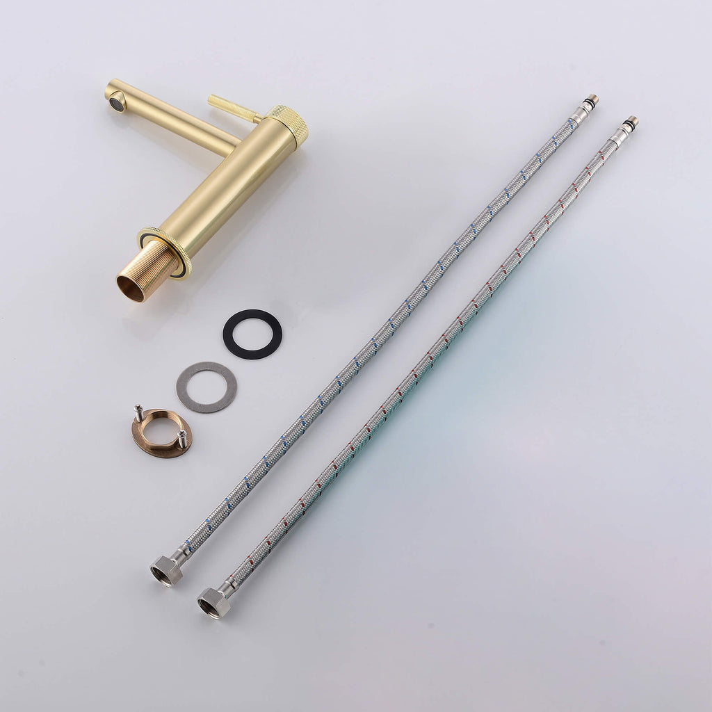 • 【Signature Knurled Handle & Base Detailing】Industrial-inspired knurling provides a tactile, non-slip grip and adds a sophisticated design accent. A standout feature rarely found in standard faucets.