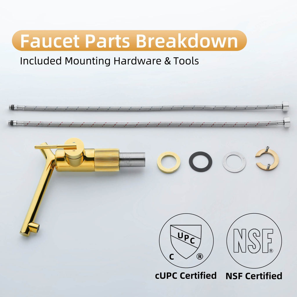 - 【Deck Mounted, Single-Hole Installation】Designed for standard single-hole bathroom sinks, allowing quick and straightforward installation.