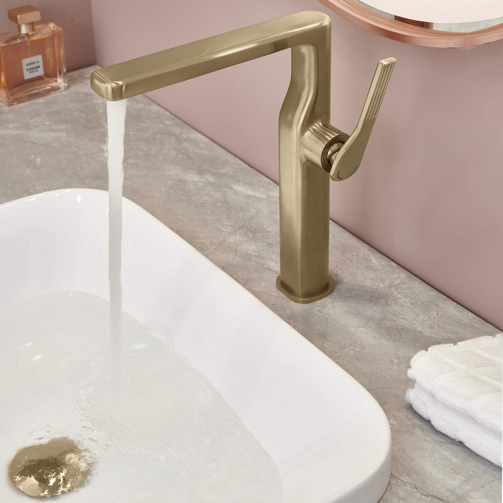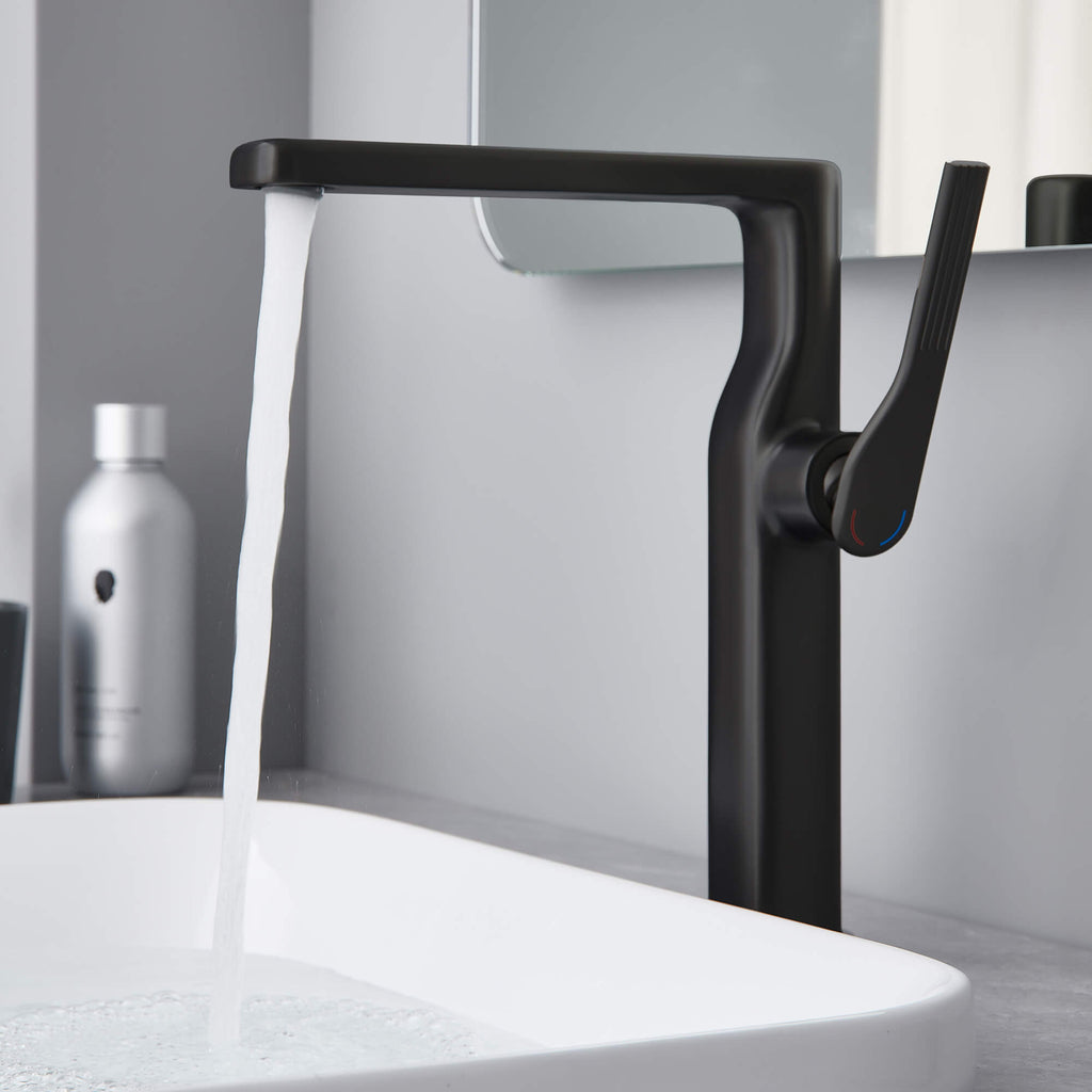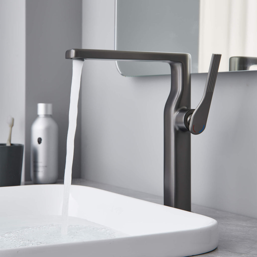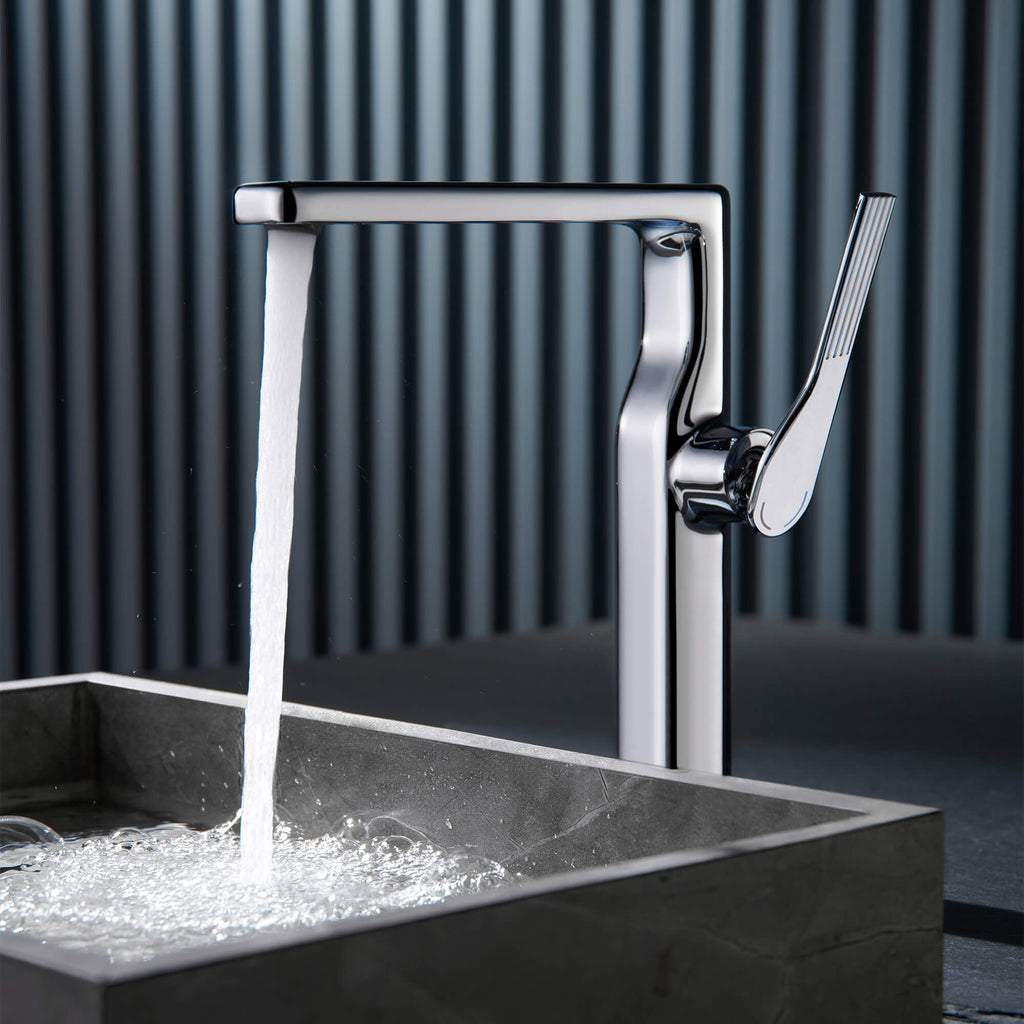 - 【Tall Basin Faucet Ideal for Vessel Sink Installations】Designed with an elevated high arc spout, this tall basin faucet offers generous clearance for washing and works seamlessly with most vessel sink faucet setups.