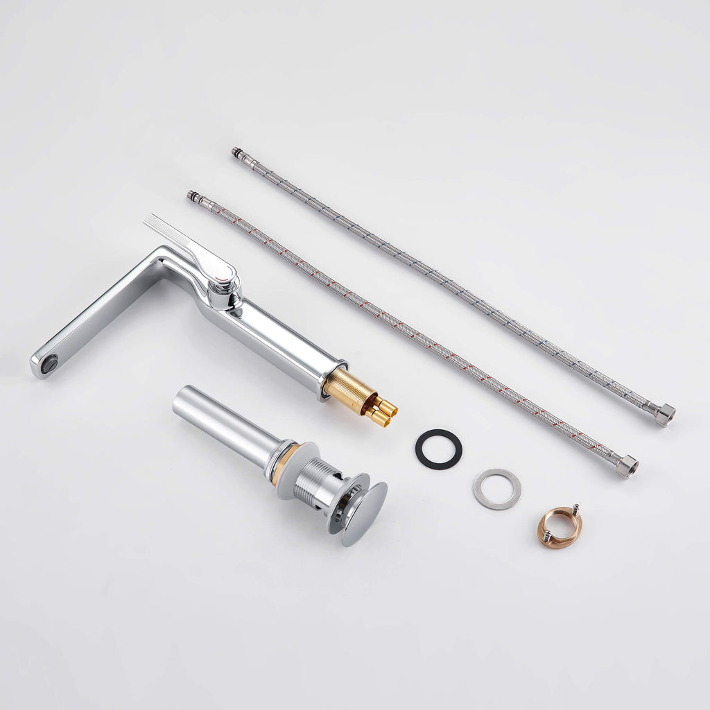 - 【Smooth Single-Handle Control for Temperature and Flow】The ergonomic lever on this single handle faucet ensures precise water adjustment with one effortless motion—comfort, convenience, and efficiency in daily use.