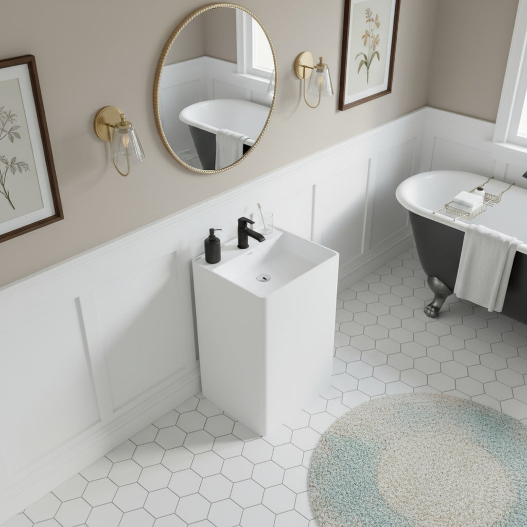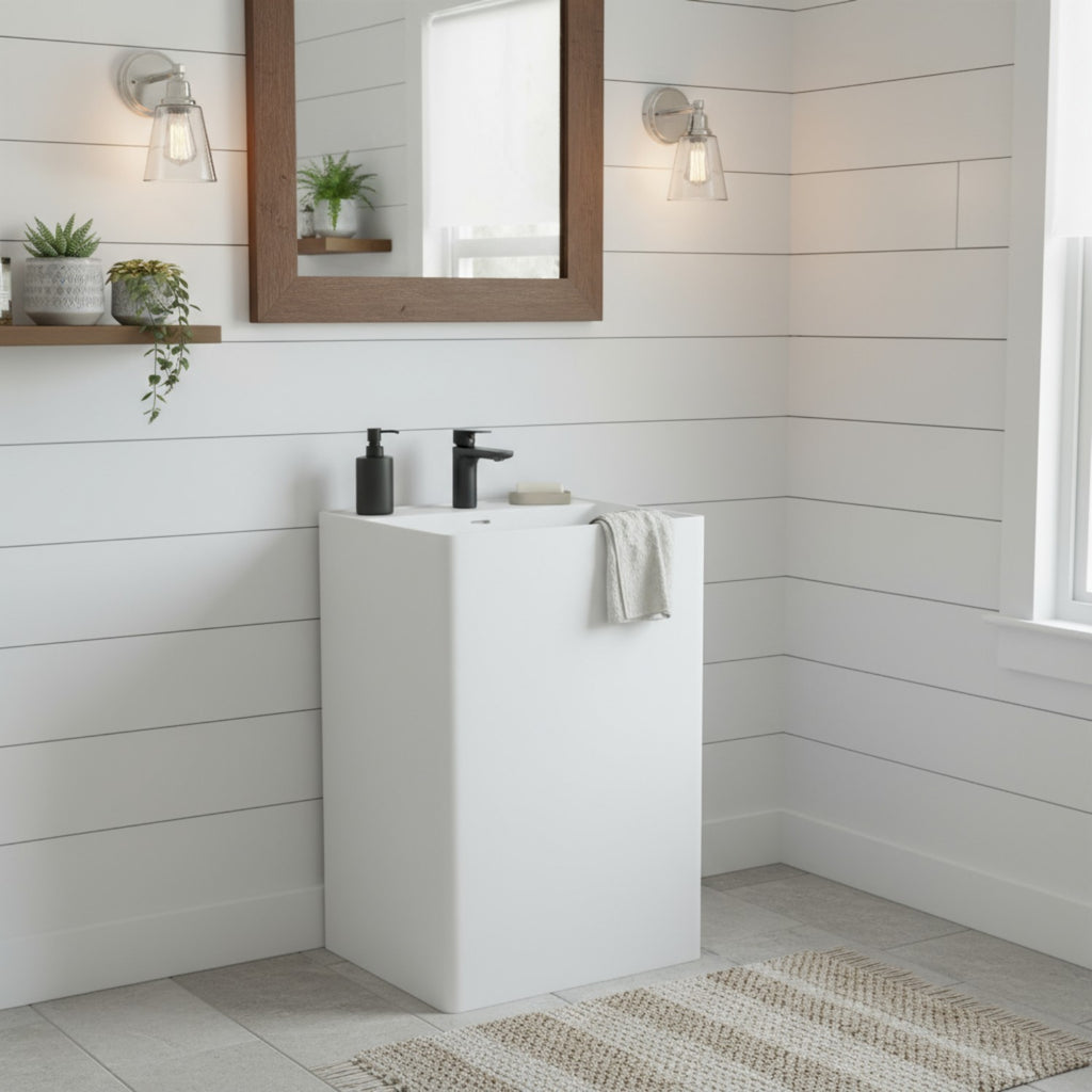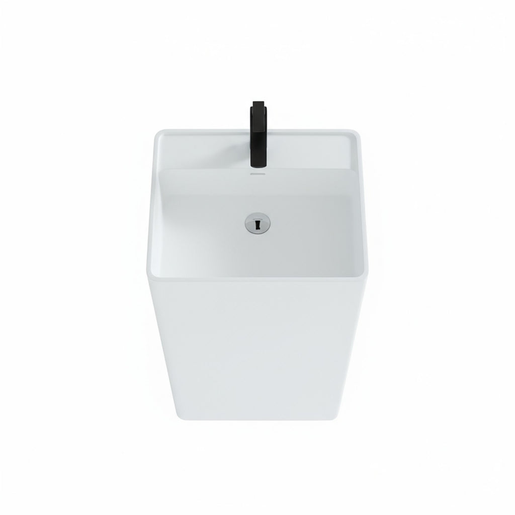 • 【Seamless One-Piece Basin】Integrated solid surface basin and pedestal design provide a smooth, elegant appearance and ensure long-lasting structural strength. Built-in overflow and single faucet hole offer functional convenience.