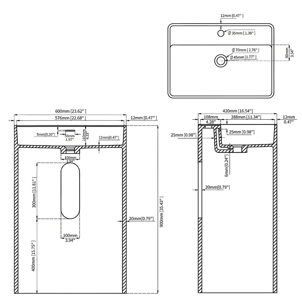 • 【Modern Rectangular Design】35-inch rectangular freestanding pedestal sink with a clean, minimalist silhouette and matte white finish. Its space-saving pedestal structure makes it ideal for modern bathrooms, powder rooms, and commercial washrooms.