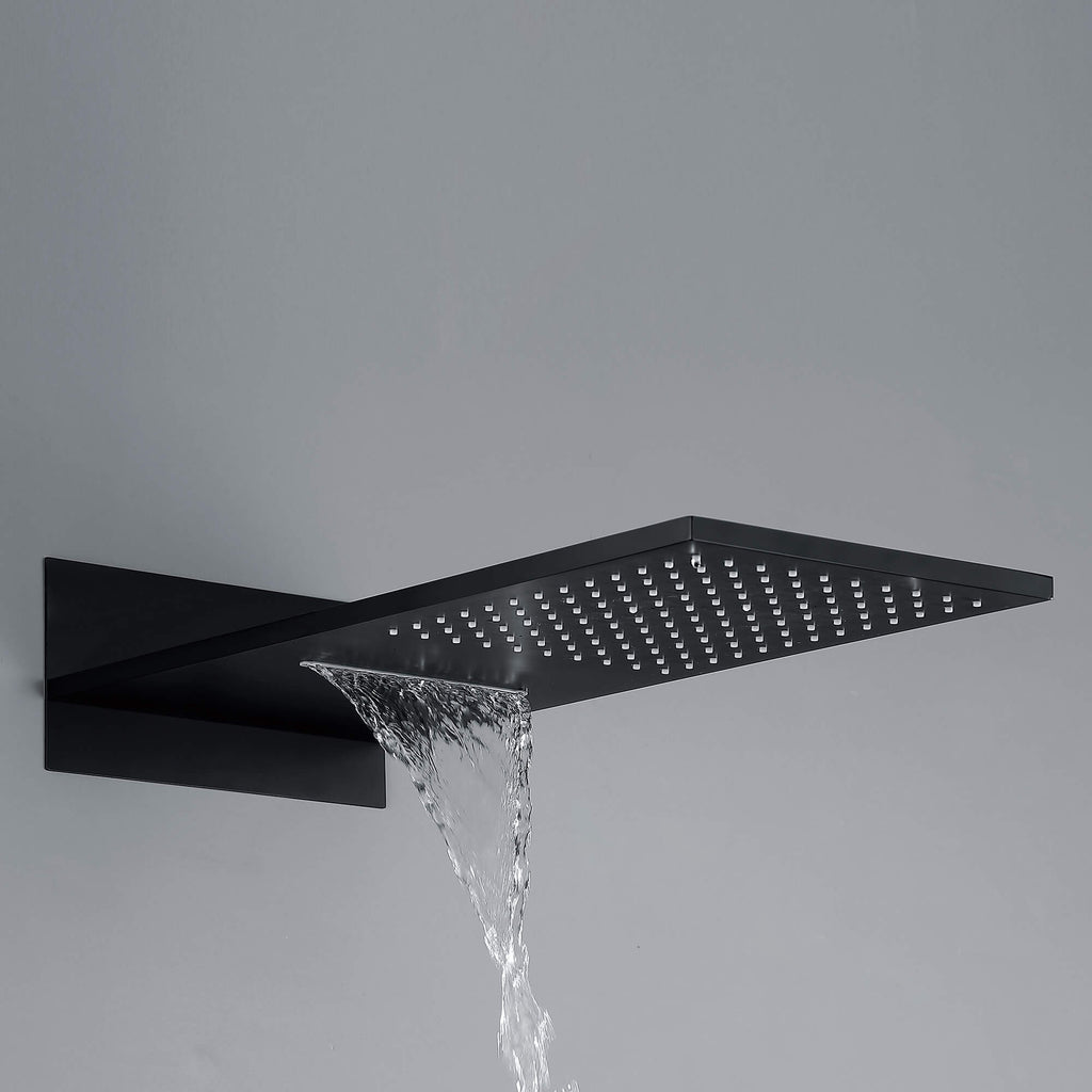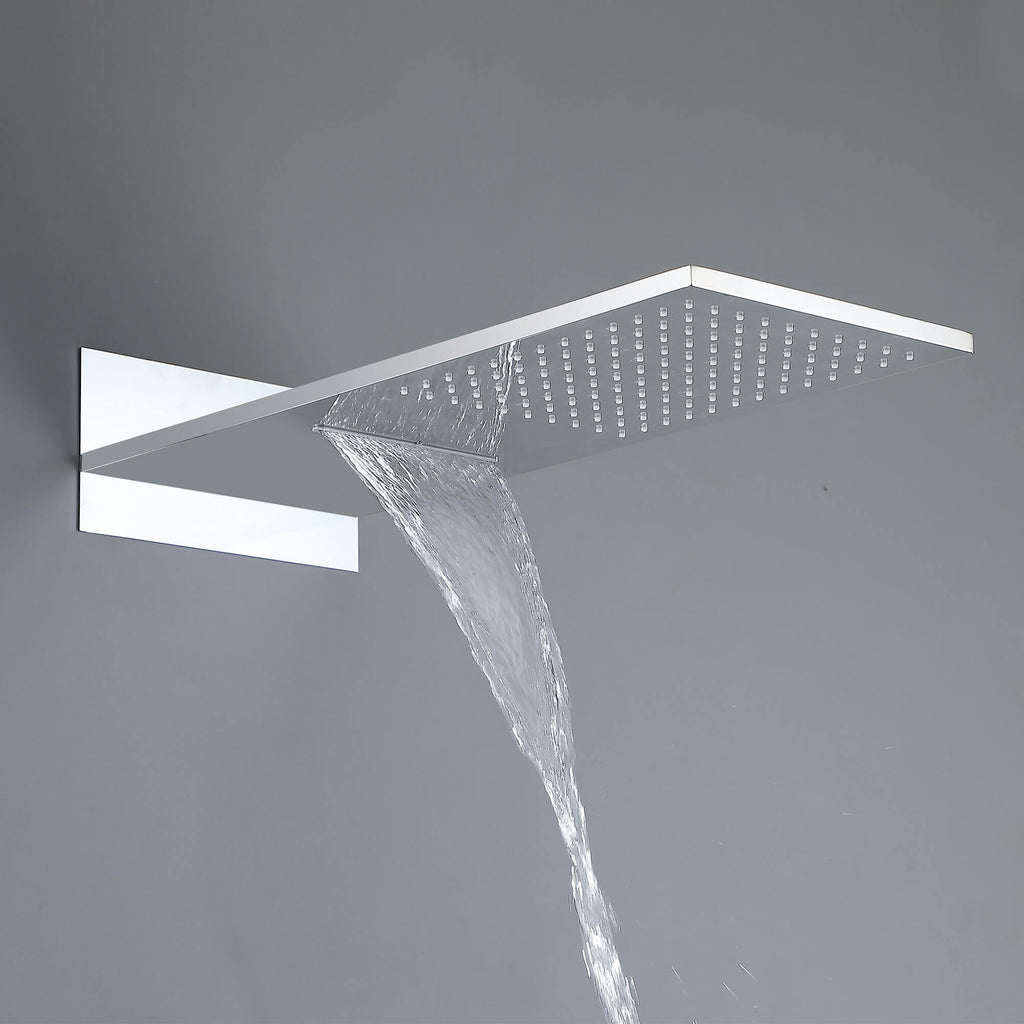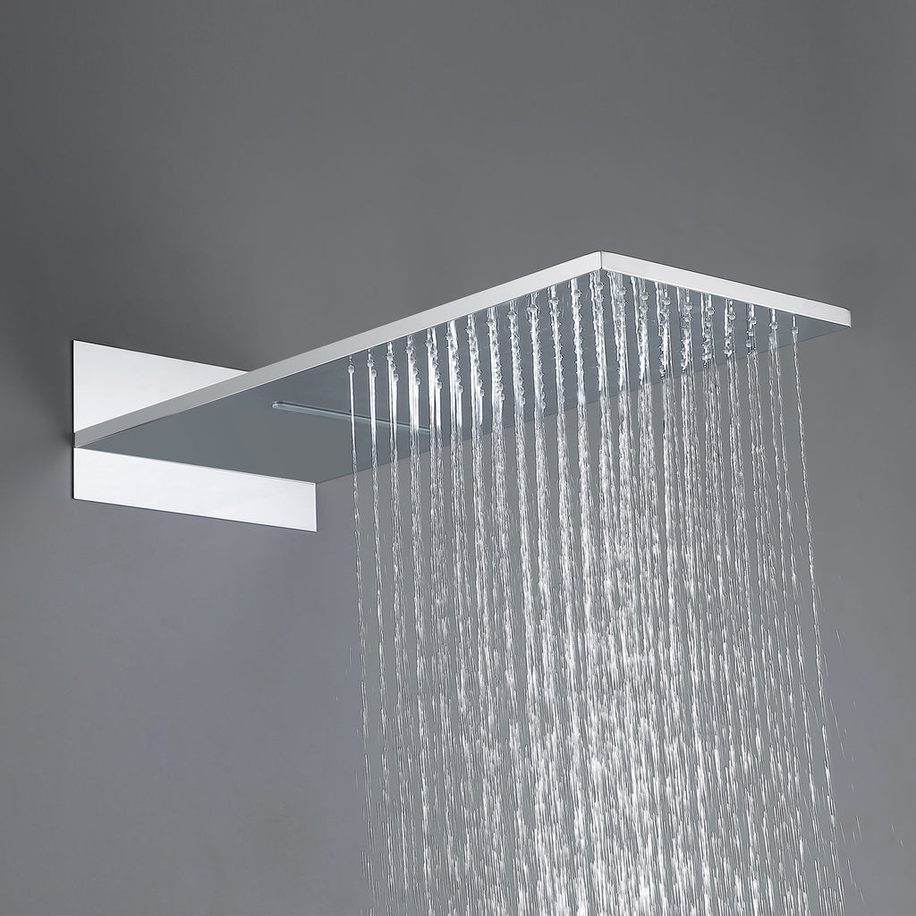 - 【Oversized Rectangular Head】Wide 9" × 21.65" (W × D) face delivers drenching rainfall and a rejuvenating waterfall blade.