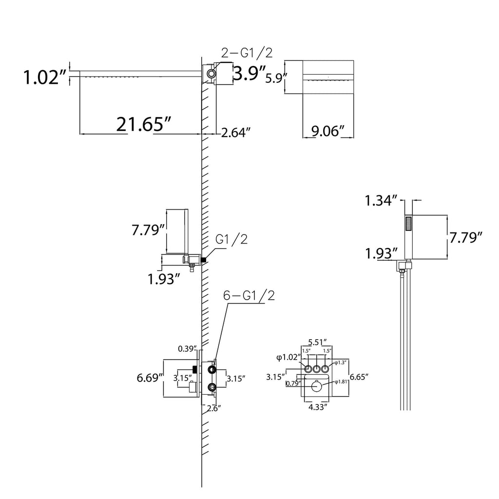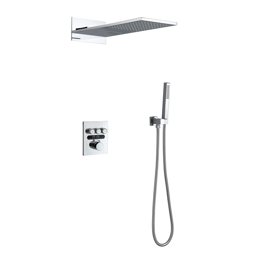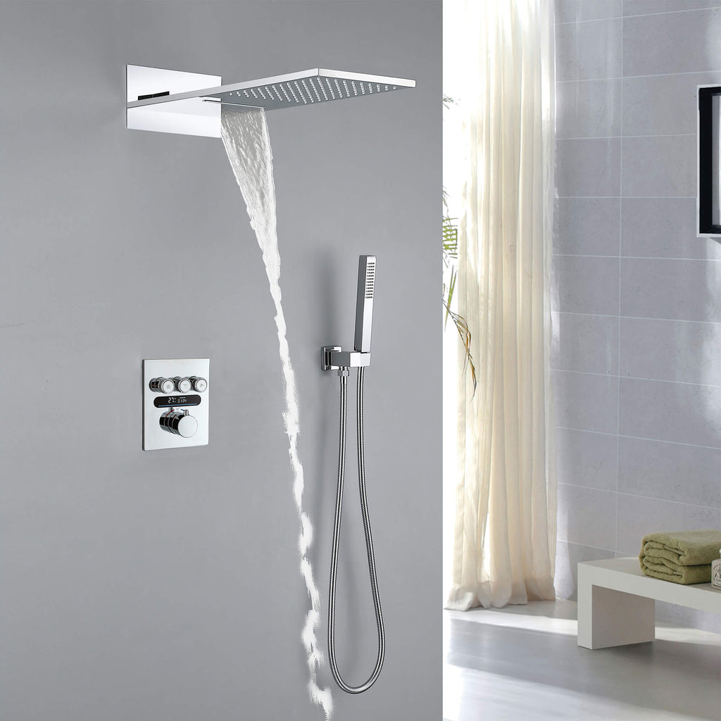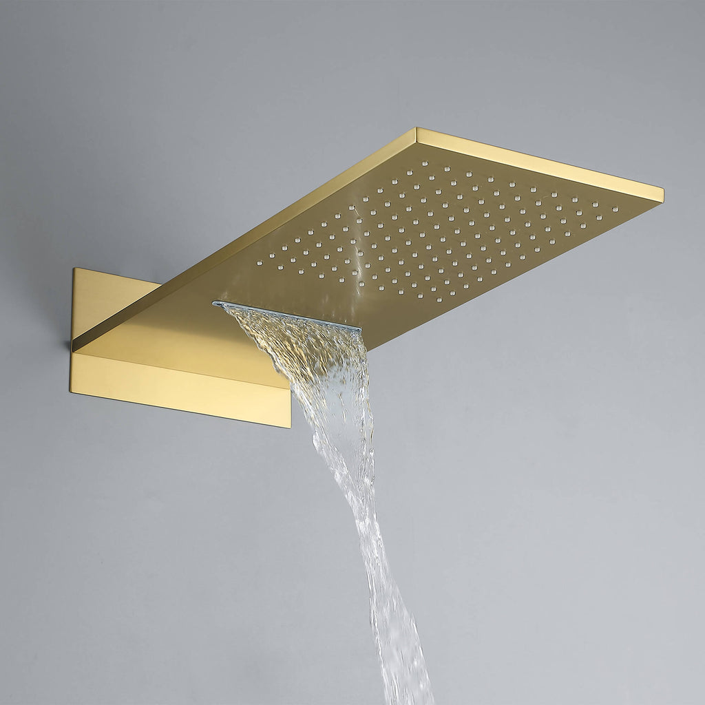 - 【Oversized Rectangular Head】Wide 9" × 21.65" (W × D) face delivers drenching rainfall and a rejuvenating waterfall blade.