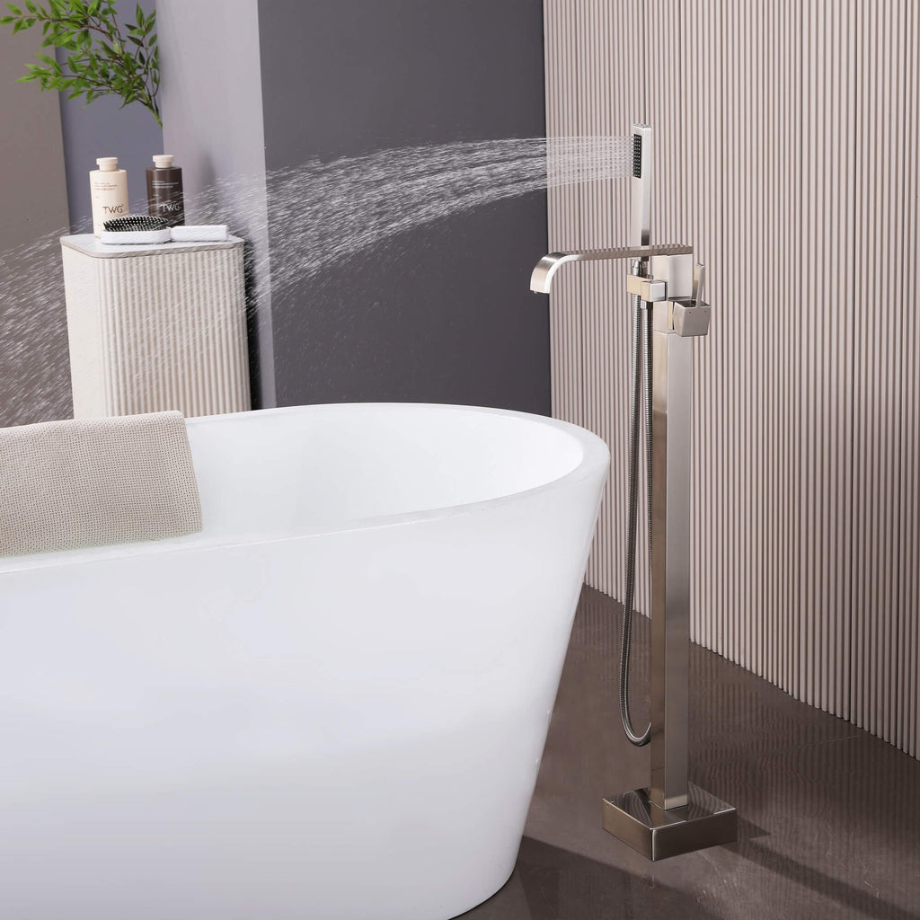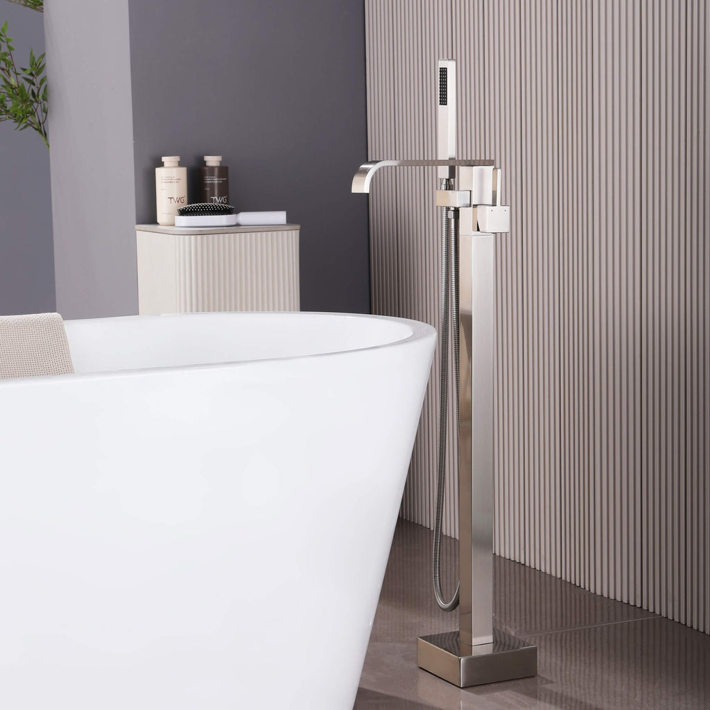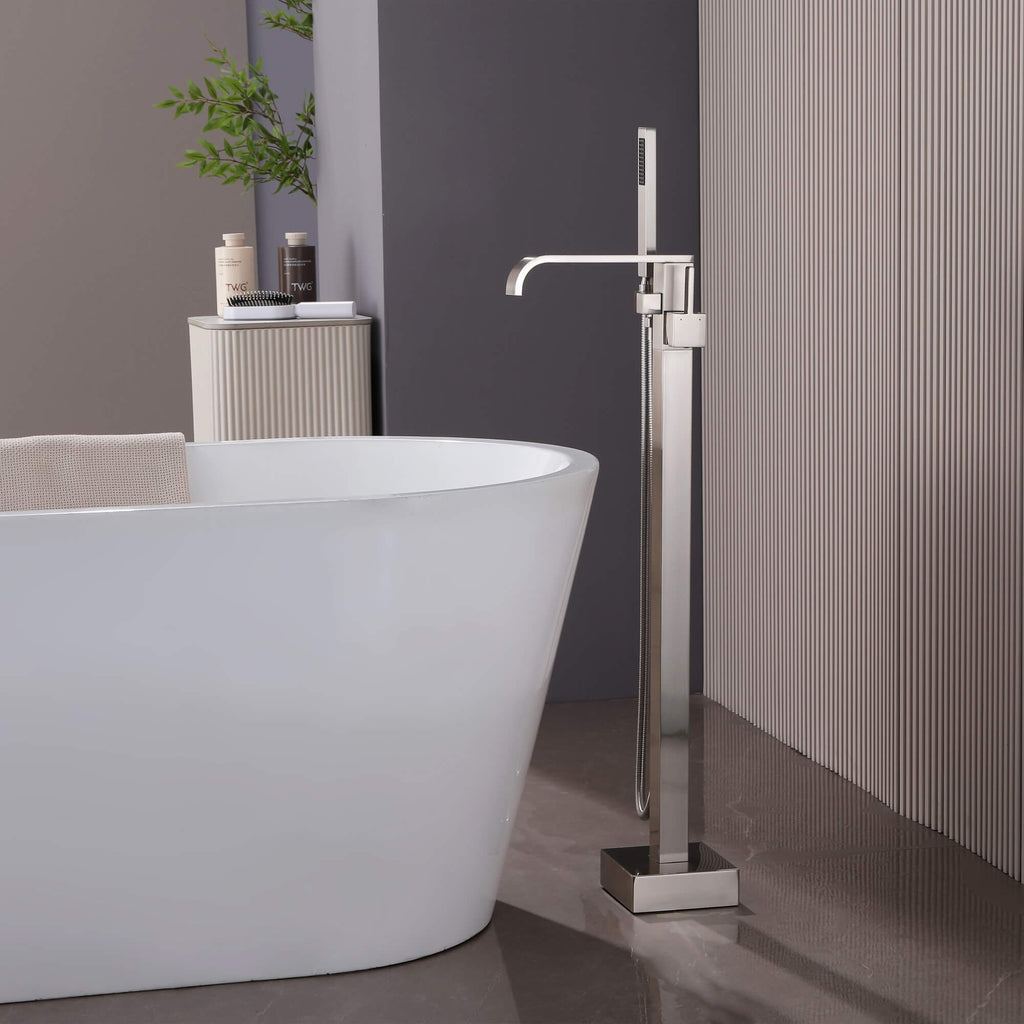 - 【Freestanding Floor-Mounted Bathtub Faucet】Designed for freestanding bathtubs, the floor-mounted tub filler creates a clean, modern profile while allowing flexible placement in open bathroom layouts.