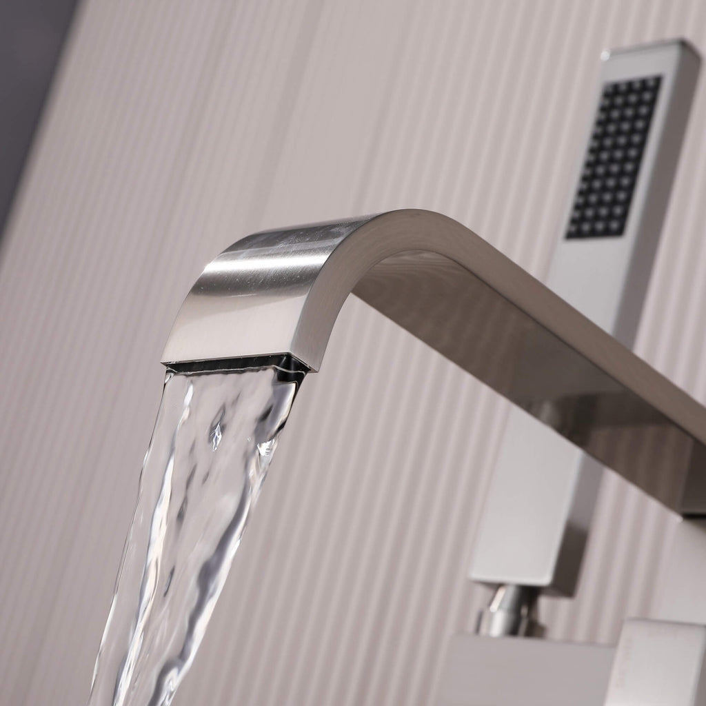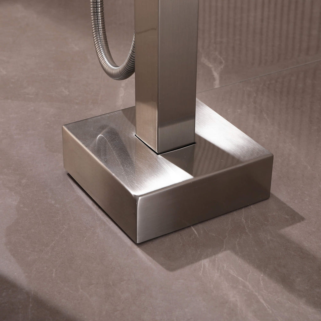 - 【Premium 304 Stainless Steel Construction】Crafted from solid 304 stainless steel, this freestanding bathtub faucet provides excellent corrosion resistance, rust protection, and long-lasting durability for daily bathroom use.