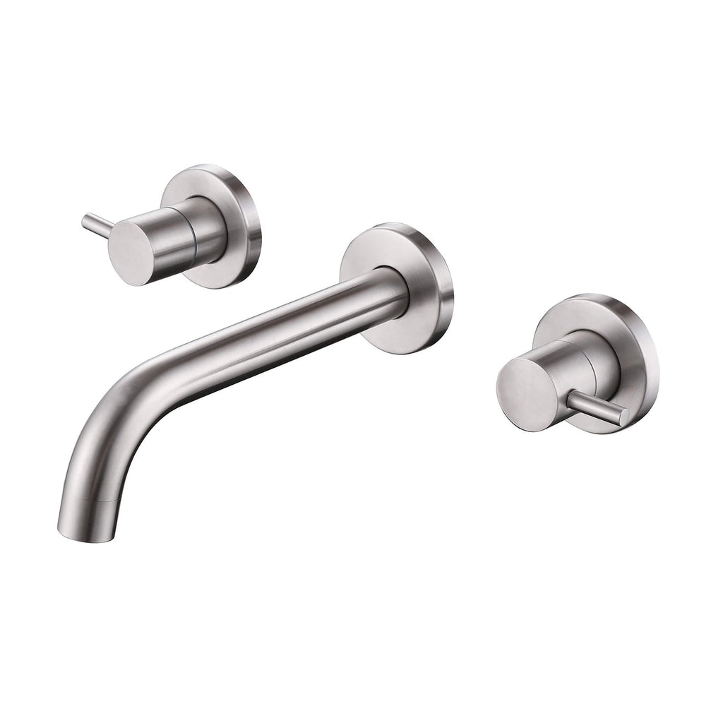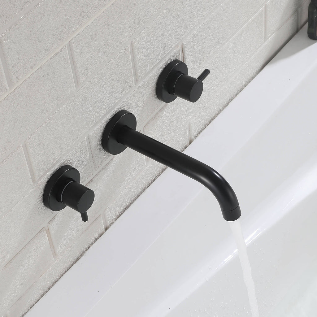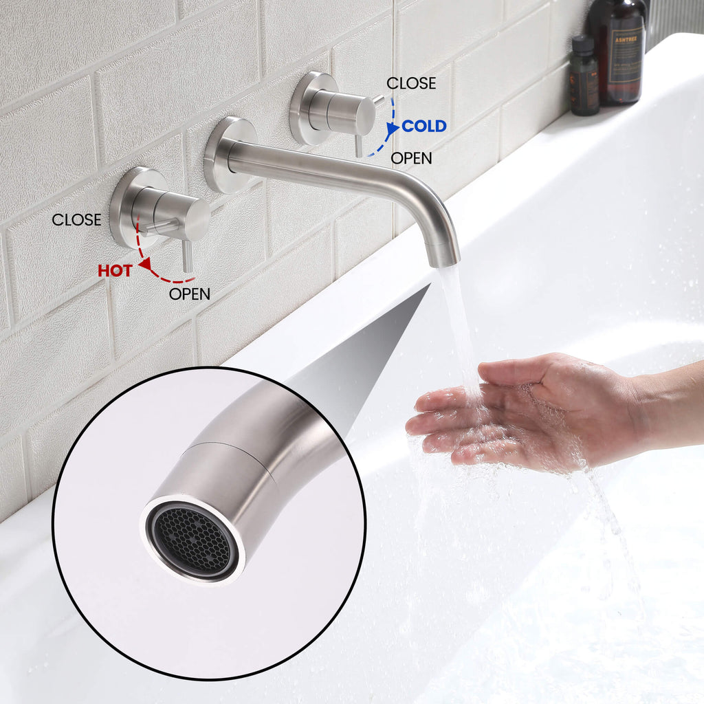 - 【Modern Wall-Mount Style】The clean cylindrical lines and minimalist dual-handle layout pair perfectly with modern bathrooms. Available in matte black and brushed nickel finishes to match a wide range of décor styles.