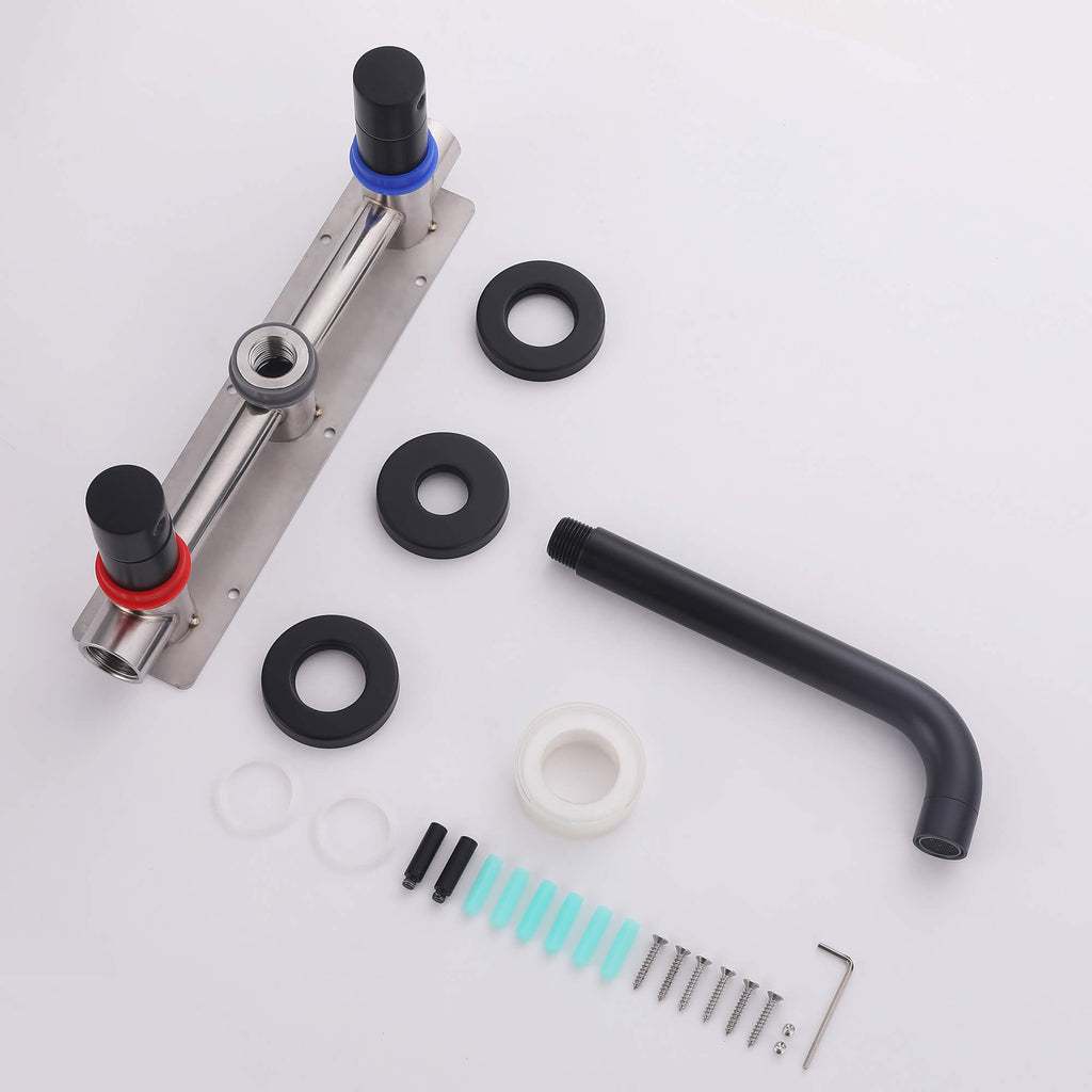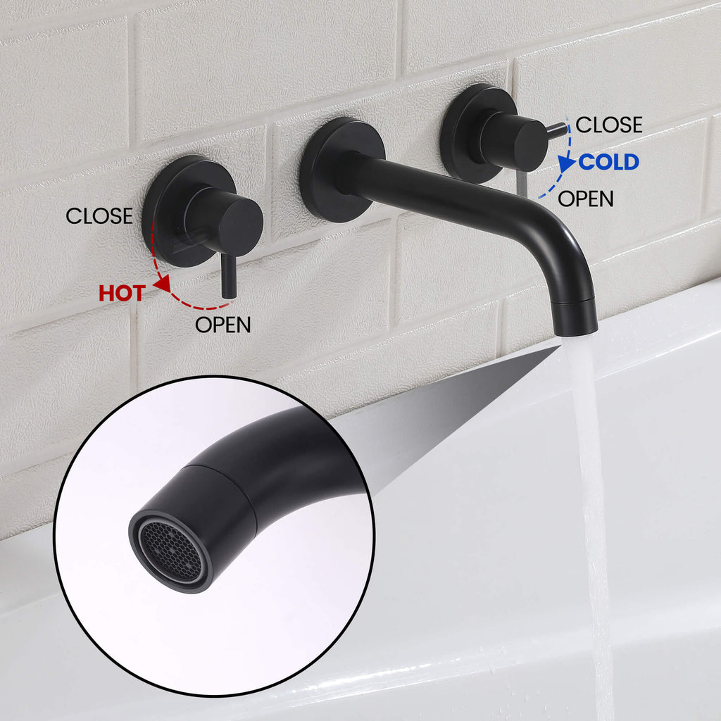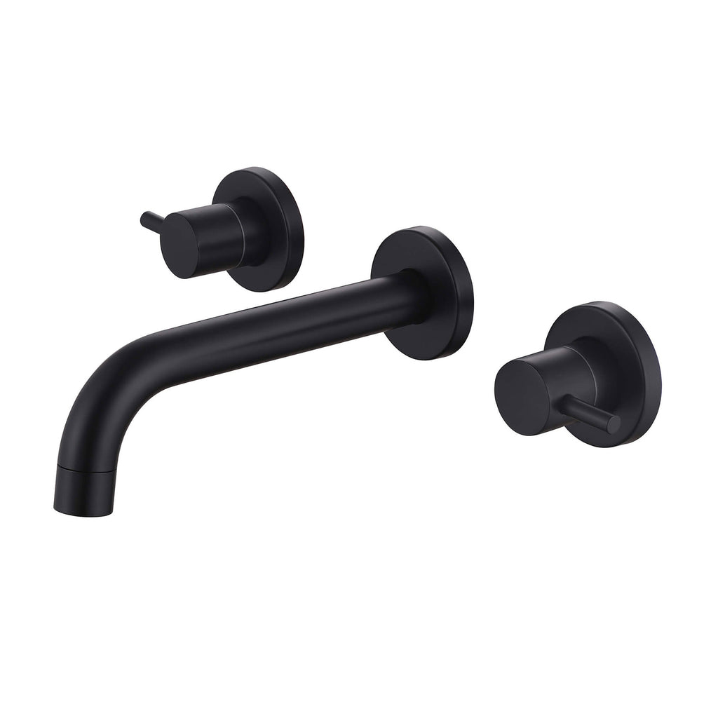 - 【Modern Wall-Mount Style】The clean cylindrical lines and minimalist dual-handle layout pair perfectly with modern bathrooms. Available in matte black and brushed nickel finishes to match a wide range of décor styles.